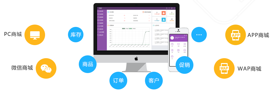 PC商城、WAP商城、微信商城、APP商城四大銷售渠道,客戶、商品、訂單、庫(kù)存、促銷互聯(lián)互通,實(shí)現(xiàn)一站式統(tǒng)一管理。